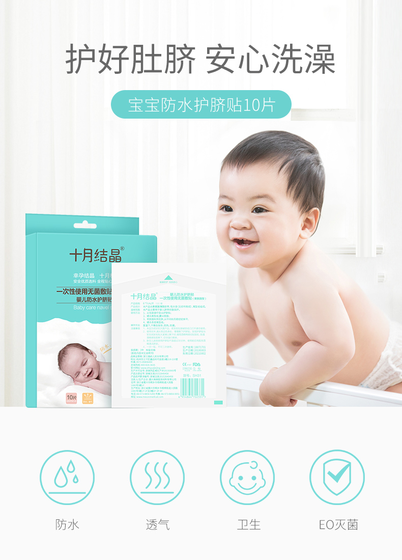 十月结晶婴儿肚脐贴新生儿透气护脐贴宝宝洗澡游泳防水脐带贴10片