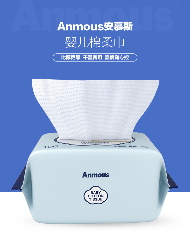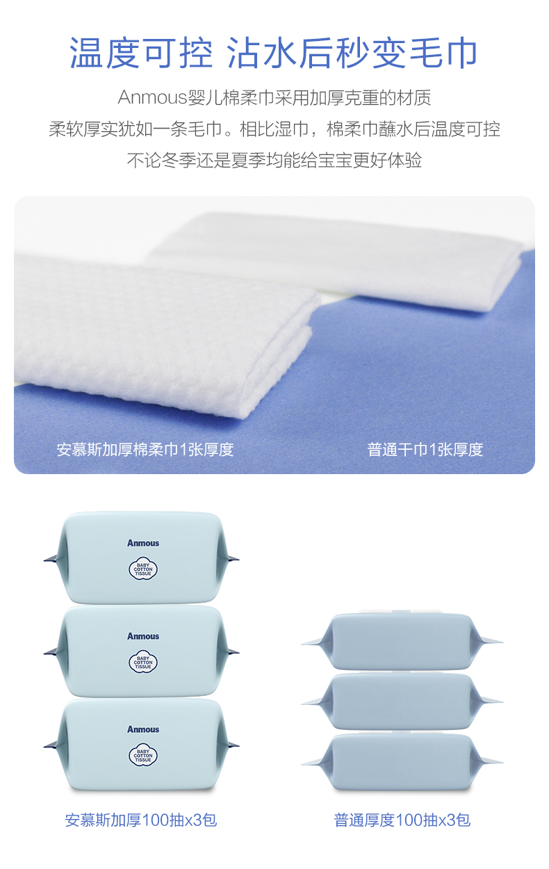 安慕斯 婴儿棉柔巾15cm*20cm 100抽*6包加大加厚宝宝手口干湿柔巾抽纸新生儿棉手帕纸巾