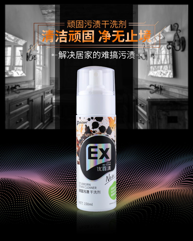 优露清(Explution) 顽固污渍干洗剂 羽绒服清洗剂 衣服去油渍 布艺沙发免水洗去污清洁剂 1瓶装
